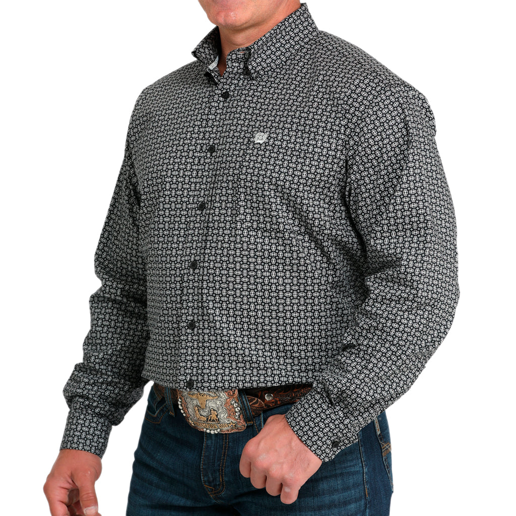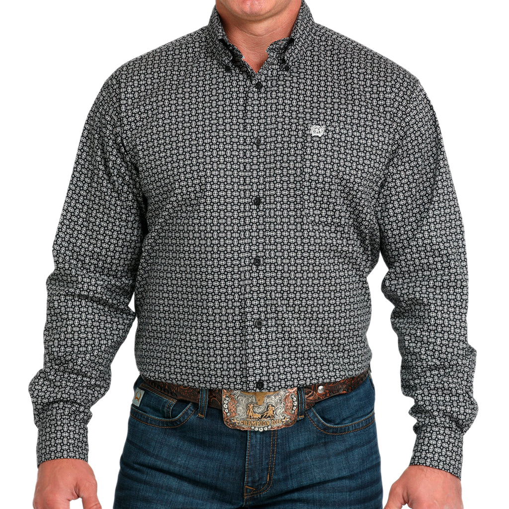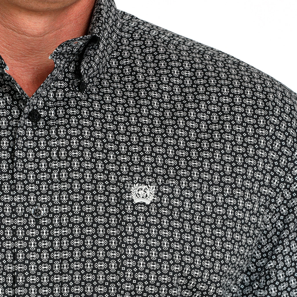 Confeccionado con mayor elasticidad para una mayor libertad de movimiento, este tejido liso de algodón y elastano estampado en negro es clásico, atemporal y está listo para destacar. Sus características de diseño incluyen un bolsillo delantero izquierdo abierto con el logo Cinch bordado y botones negros.