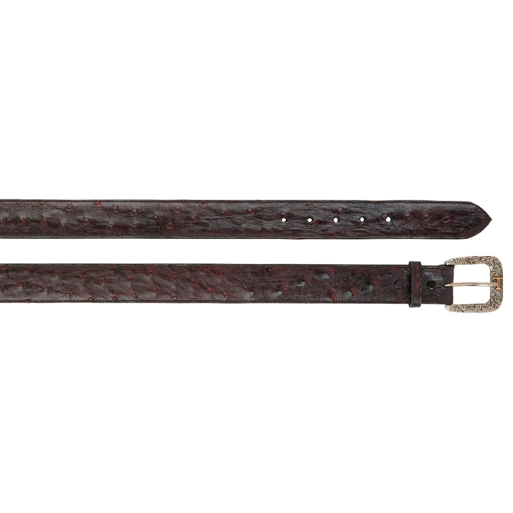 Cinturón exótico de Lucchese fabricado con piel de avestruz. El cuero de avestruz de pluma completa del cinturón se complementa con una hebilla plateada ornamentada que le da el toque occidental definitivo, haciéndolo versátil, atractivo y elegante. Este cinturón fue diseñado para ser usado con botas de avestruz a juego, pero también puede ser emparejado con pantalones vaqueros o un traje. Hecho a mano en Texas. 1,5» de ancho Hebilla desmontable