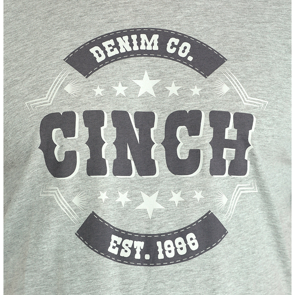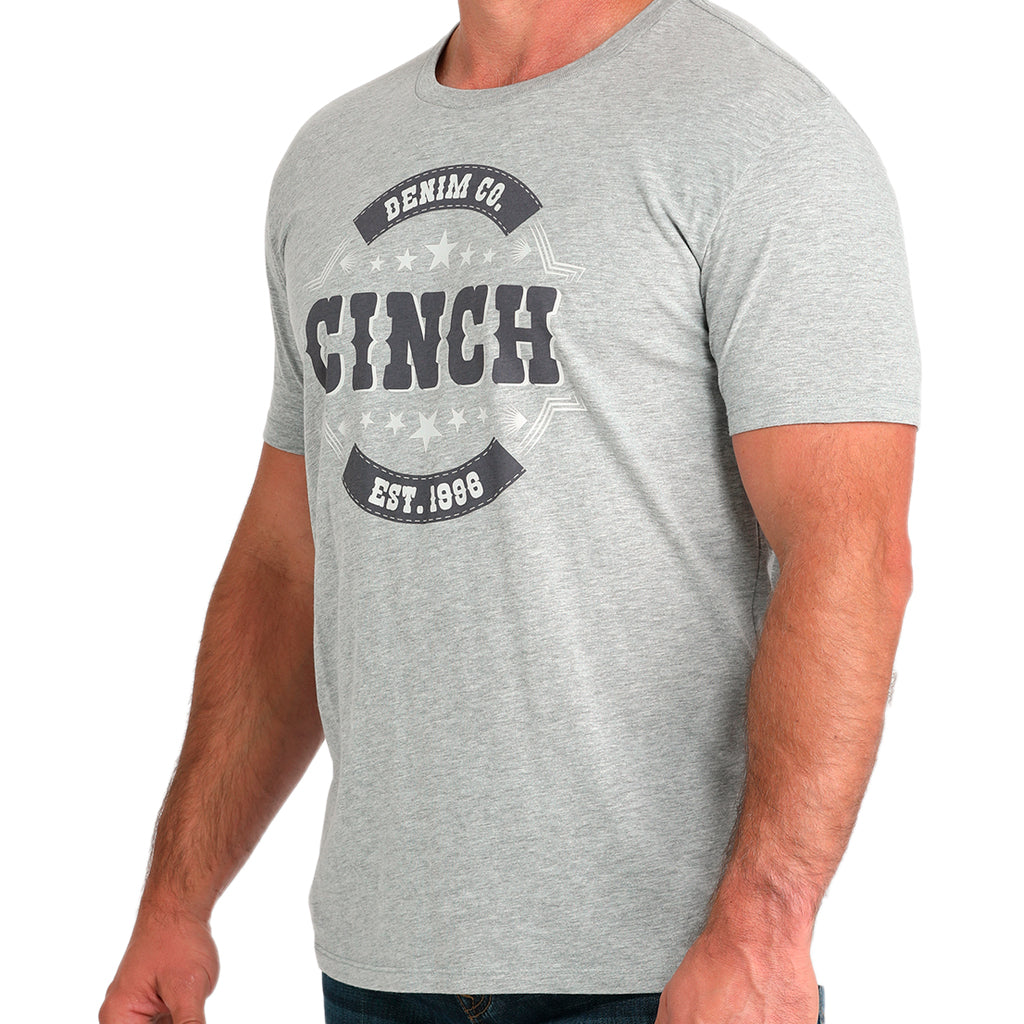 Crea tu colección de básicos con esta camiseta gris de algodón y poliéster con cuello redondo, confeccionada por CINCH. Nuestra camiseta para diario luce una serigrafía frontal de CINCH Denim Co. y combina con cualquier prenda vaquera de tu colección