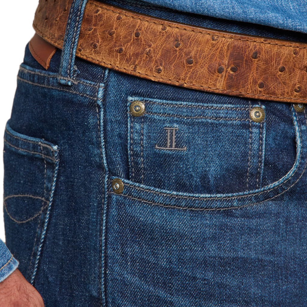 Jesse es un vaquero recto de tiro medio que se ajusta perfectamente a la cintura. Es ajustado en la cadera, pero con espacio en la entrepierna para una zancada óptima. La pernera es ligeramente más estrecha desde la rodilla hasta la abertura inferior. Cada lavado Jesse está confeccionado en denim turco o italiano. Con nuestro icónico medallón en la puntera en los bolsillos traseros y el logo Mirrored-L en el bolsillo para monedas, todo nos recuerda a nuestras legendarias botas